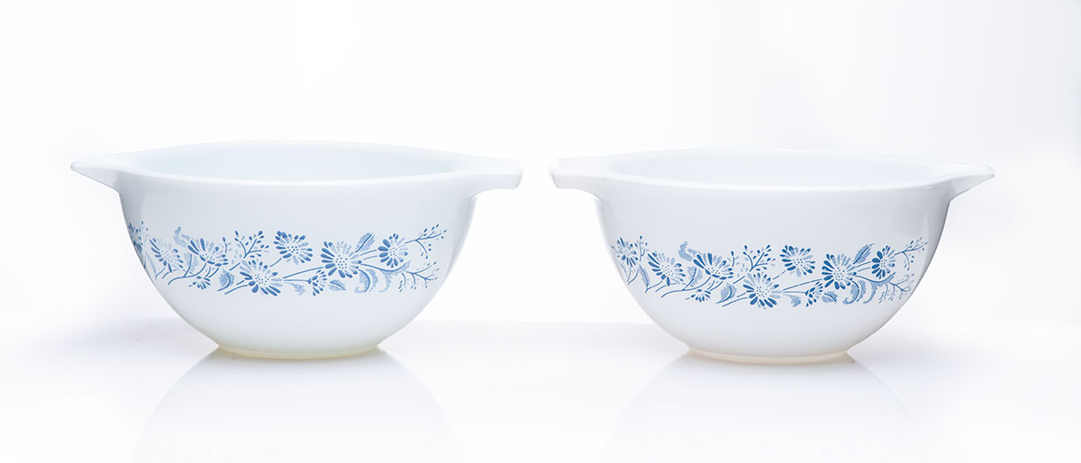 Vintage Pyrex Colonial Mist Pattern Cinderella Bowls